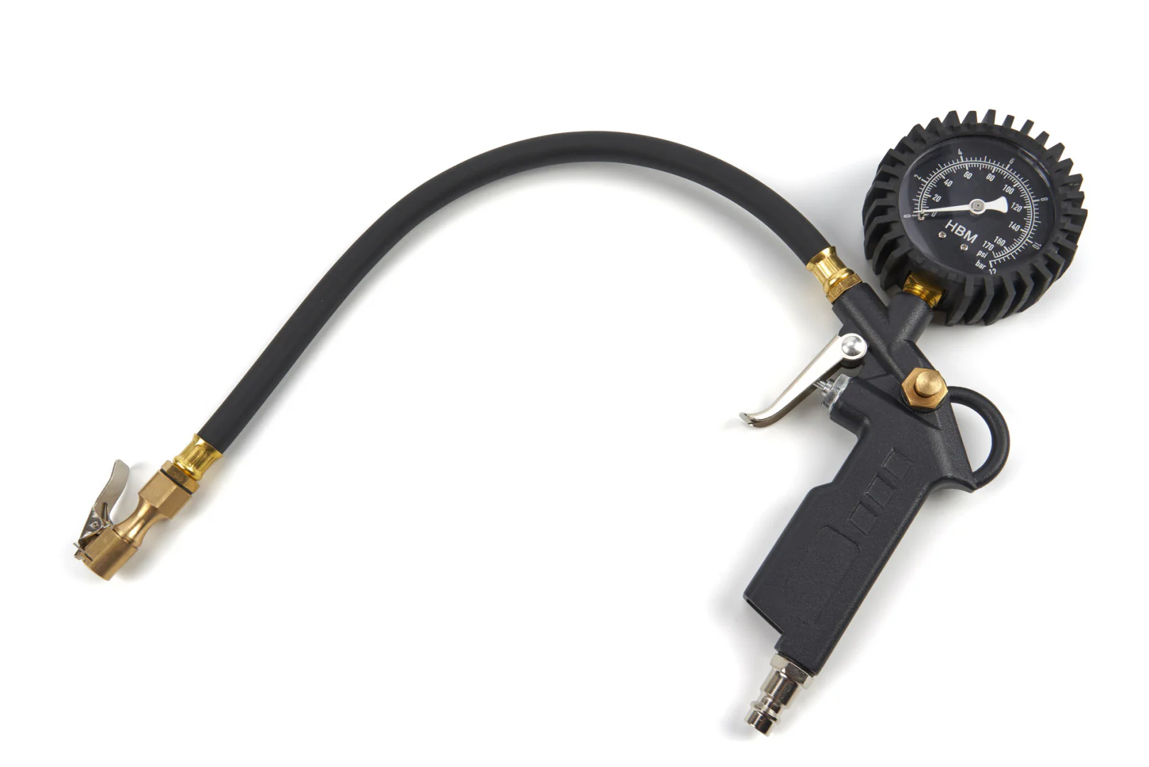 Acest PISTOL DE UMFLAT ROTI HBM 8 PIESE este echipat cu o carcasa foarte rezistenta din aluminiu si capac special din plastic pentru a proteja manometrul.