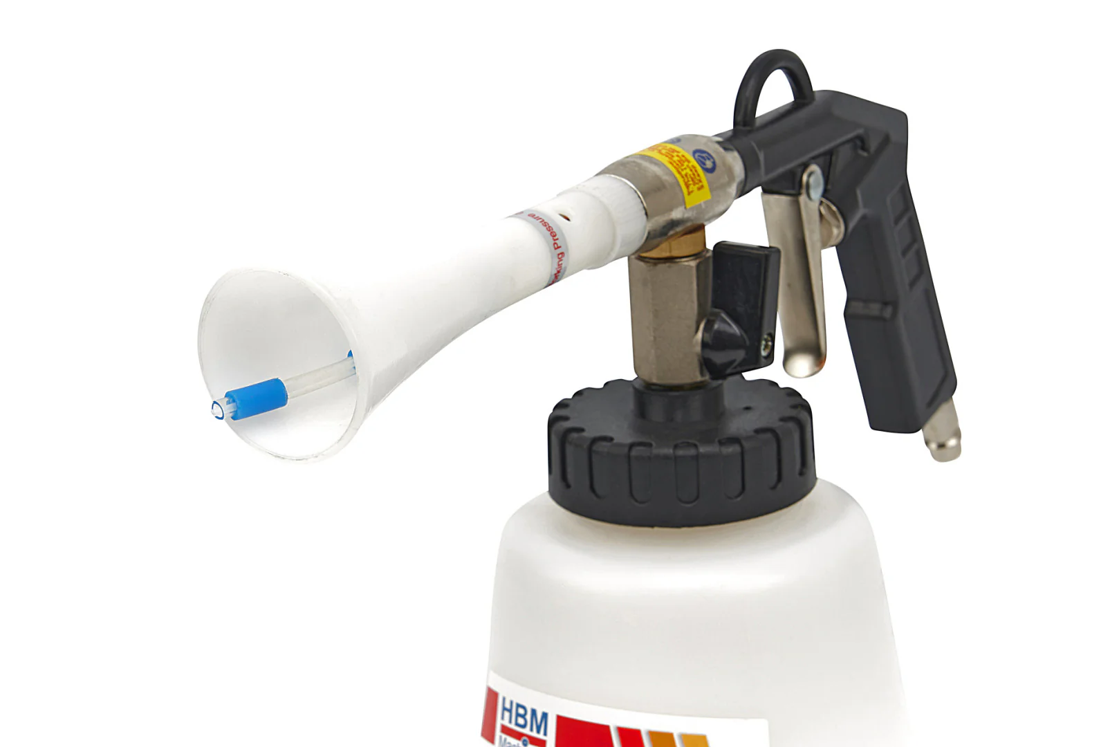 Acest PISTOL PNEUMATIC PT SPALAT TAPITERII TORNADOR MODEL 2 este echipat cu un furtun de aer rotativ, unde aerul si agentul de curatare ies sub presiune ridicata ca intr-o tornada. Acest lucru are ca rezultat o curatare foarte buna a tapiteriilor si poate fi folosit si pe verticala, de exemplu atunci cand curatati plafonul autoturismului.